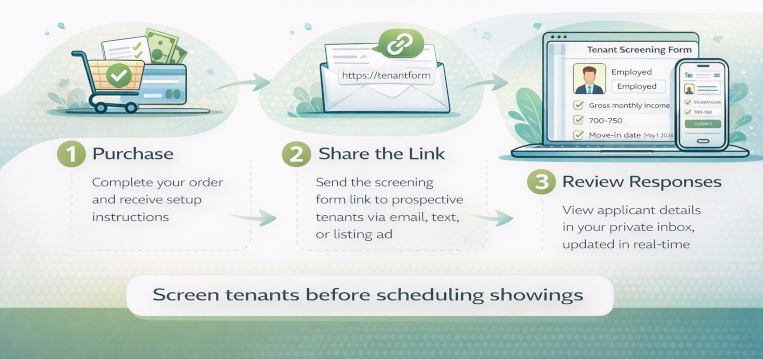 - Share the link — Send the screening form to prospective tenants via email, text, or listing ad